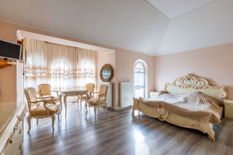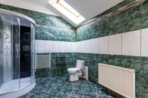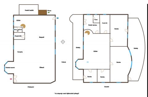A ház méreténél és két bejáratánál fogva kiválóan alkalmas lehet két generációnak, nagy családnak vagy akár vállalkozással egybekötött otthonnak is.
