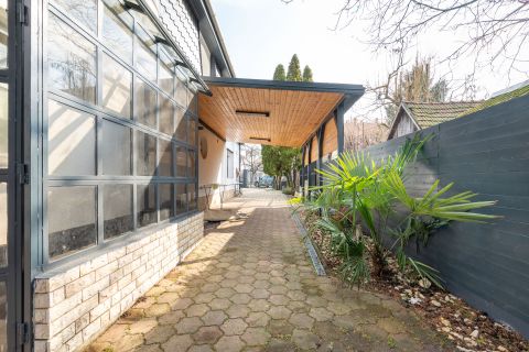 Az összközműves, 2016-ban saroktelekre épített háznak 2 utcai bejárata van. A 2024-es széleskörű felújításkor a ház 15 cm-es hőszigetelést kapott. A nagy, egybefüggő tereket a monolit vasbeton födém tudja biztosítani. A felújításkor az egész ház új burkolatokat kapott gránit és márvány felhasználásával.