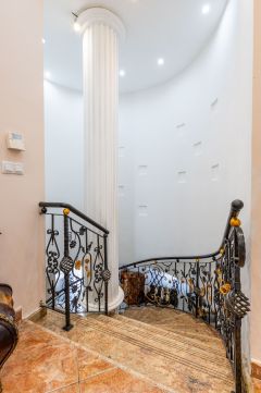 Építészeti megoldásai között érdemes megemlíteni a teret meghatározó csigalépcsőt az egyedi díszítésével, illetve a teraszokat, amik minden irányból fényt engednek a házba és ennek köszönhetően a szobák többnyire teraszkapcsolattal rendelkeznek.