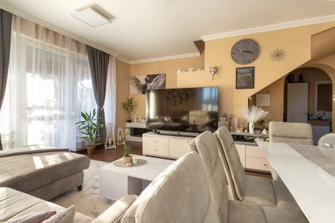 Nagytarcsa egyik legkedveltebb részén, a Felsőrét lakópark csendes zsákutcájában eladó, 2 szintes, 88 m²-es sorház, kiemelkedően nagy, 350 m²-es parkosított kerttel.