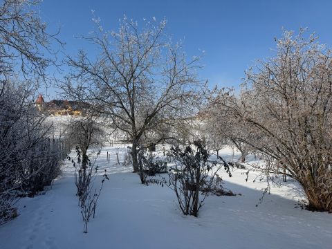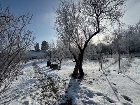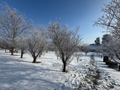 Tartozik a házhoz két 16 m2- es garázs is, és számos tárolásra alkalmas melléképület, amik a közel 2000m2- es gyümölcsöst hivatott kiszolgálni, ami az ingatlanhoz tartozik. Az egész udvar annyira védett és intim, hogy a spanyol vidéki haciendák hangulatát idézi. A kertet nagy ősfák is díszítik, míg a hátsó gyümölcsösben minden megterem, ami csak a családnak szükséges lehet.