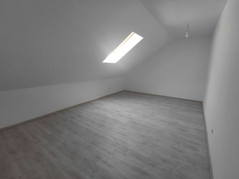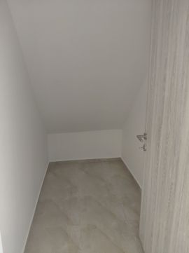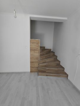 A ház belső tere világos, tágas és átgondolt elrendezésű. Az alsó szinten egy amerikai konyhás nappali található, melyből kijárat nyílik a hangulatos kertbe, ahol terasz, pihenősarok és zöld gyep biztosítja a kikapcsolódást. Az emeleten két kényelmes méretű szoba és egy igényes fürdőszoba kapott helyet.