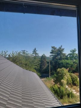 A nagy ablakoknak és a fekvésnek köszönhetően a lakás napfényes és panorámás kilátású, különösen a nappaliból és az emeleti hálószobákból.