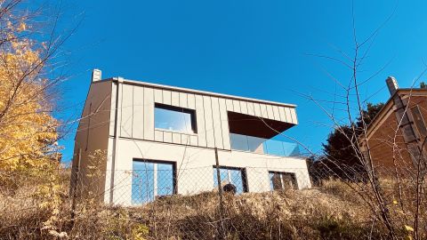 A ház modern, időtálló megjelenését a különleges tetőforma, a nagy belmagasságú nappali és a házból nyíló panoráma adja. A kivitelezés a legmagasabb energiahatékonysági elvárások szerint készül, prémium anyaghasználattal.