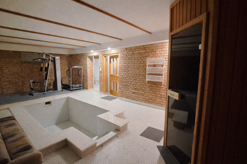 - egy wellness helyiség, amiben egy teljesen új elektromos finn szauna, egy merülőmedence és egy kis rész, ahol a kondigépek találhatók 35,3 m2