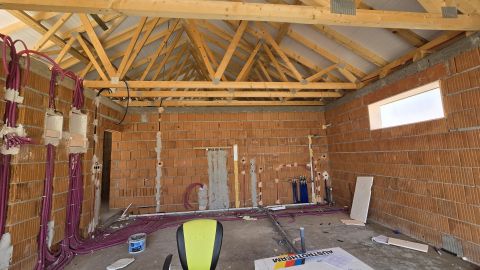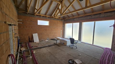 Az ingatlan prémium alapanyagokból készült és folyamatos építés alatt áll. Tartozik hozzá három szoba , két fürdőszoba külön wc vel, előszoba, konyha és étkező, kamra, háztartási helyiség, tágas fedett terasz valamint egy dupla garázs.