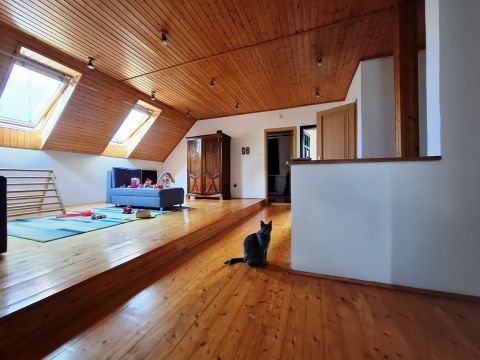 A tetőtérben jól szeparált hálószobák kaptak helyet, így az ingatlan akár két generáció számára is ideális. Kialakításának köszönhetően irodai célra, rendelőnek vagy egészségügyi központnak is kiváló választás.