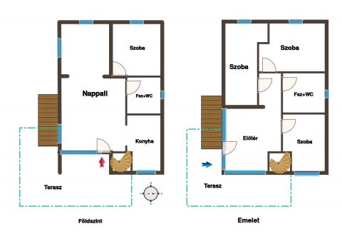 Mindkét szinten található zuhanyzós fürdőszoba WC-vel, így a két szint egymástól függetlenül is használható.