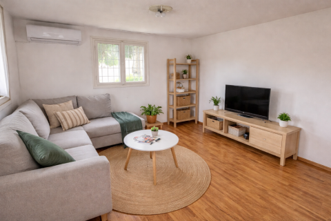 szintén 2018-ban a burkolatok cseréje megtörtént: a szobák laminált padlót, míg az előszoba és a fürdő járólapot kapott