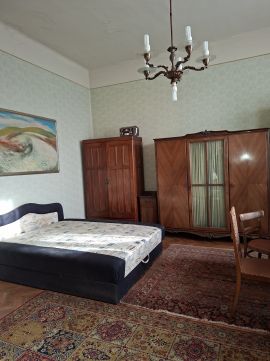 A telek 1242 m², rajta egy nettó 92 m² alapterületű villa, beépíthető tetőtérrel. Hozzá tartozik még egy 18 m²-es fedett terasz és egy 49 m² pince. A villa déli fele eladó. A ház melegét két álló cserépkályha biztosította, de bevezették a gázt is és gázkonvektorral is lehet fűteni az épületet. A villában 2 db 31 m² szoba található, illetve egy étkezős nappali, konyha, fürdő WC-vel.