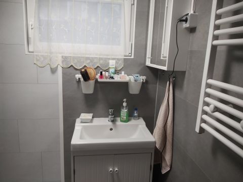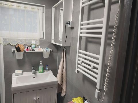 Teljesen felújított fürdőszoba új burkolatokkal és tusolóval