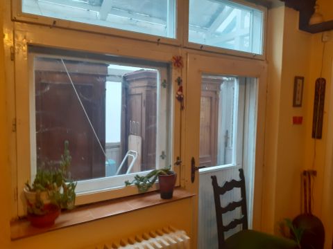 Az utcai ablakok és a kisebb lakás bejárati ajtaja műanyagra lett cserélve.
