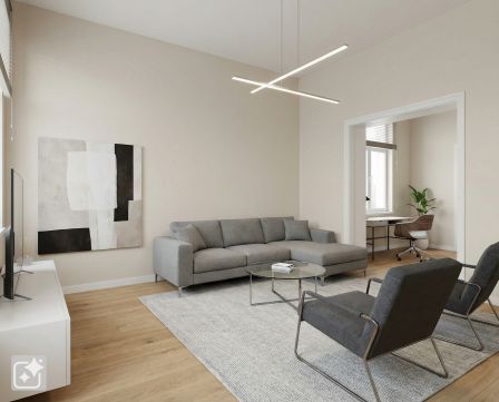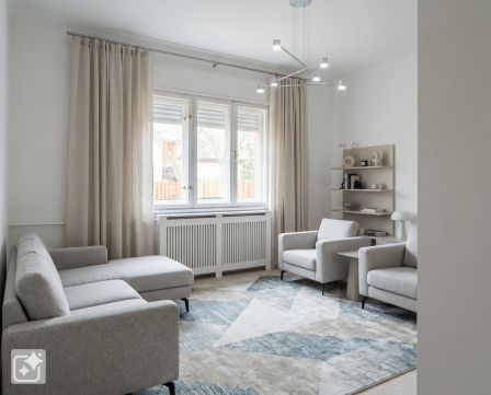 Elrendezését tekintve igazán kényelmes. Található benne 2 külön nyíló szoba, melyből az egyikhez tartozik egy tároló, akár gardrób rész is. A tágas közlekedőből nyílik az étkező, külön főzőhelyiséggel ellátva.
