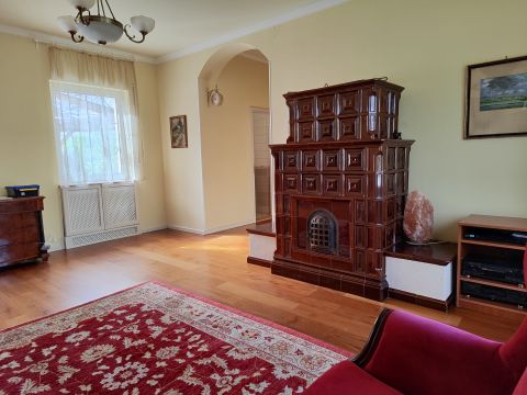- nappaliban gyönyörű cserépkályha, a fűtésrendszerre is rákötve