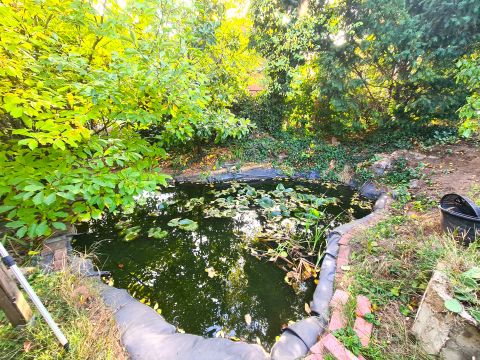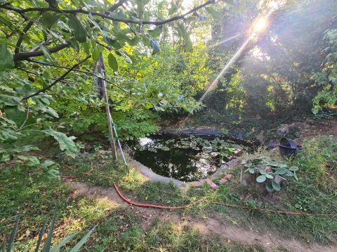Található még egy 15 nm-es pince, kerti tó, valamint betonozott gépkocsibeálló is.