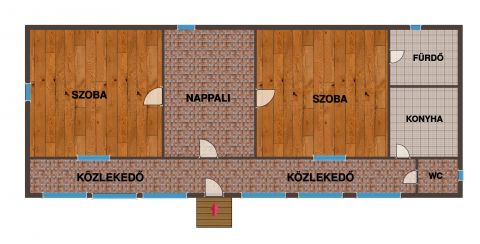 Jelenlegi hasznos lakrész 2 szobából, nappaliból, közlekedőből, kis konyhából, fürdő és külön wc-ből áll össze. De mivel teljesen felújítandó, átépítendő, így az új tulajdonos a saját magának megfelelően alakíthatja ki a számára megfelelő elosztással.