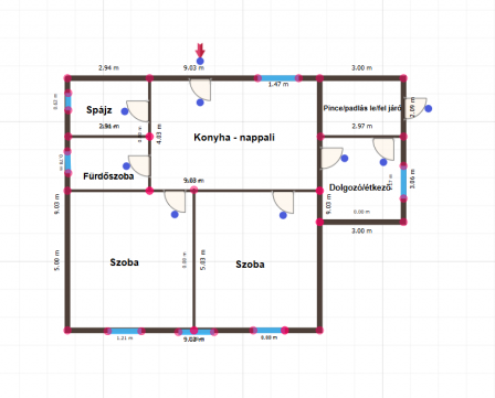 A ház jelenlegi elosztása: