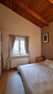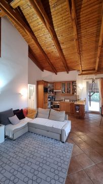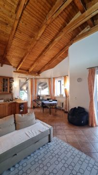 Hatalmas belső terei, és a fa látszógerendás kialakítás egyedi hangulatot kölcsönöz az egész háznak. Jó elosztású ingatlan, tágas fürdöjében finn szauna is kialakitásra került.