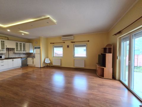 Az ingatlan egy több mint 40 nm-es amerikai konyhás nappalival rendelkezik, melyet a kerttel egy 16 nm-es árnyékolástechnikával ellátott terasz köt össze. Továbbá két egész és egy félszoba került kialakításra, a fürdőszoba tágas, WC-vel, káddal és zuhanyzóval is felszerelt, a háztartási helyiségben pedig külön WC is van. Gardróbként az előszobában található beépített szekrény funkcionál.