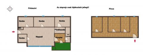 A 64 m²-es pince három különálló helyiségből áll, így kiválóan alkalmas tárolásra, műhelynek vagy akár hobbihelyiségnek is.