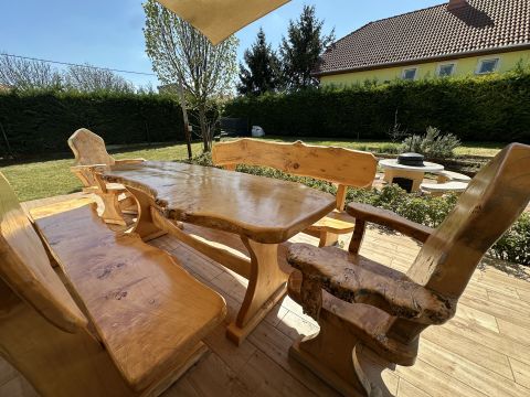 Az ingatlan hátsó fronti részén kerti sütögető került kialakításra,valamint a ház konyhájából közvetlenül ki lehet jutni a teraszra,amely szintén kiváló teret ad különböző családi rendezvények helyszínének.