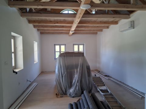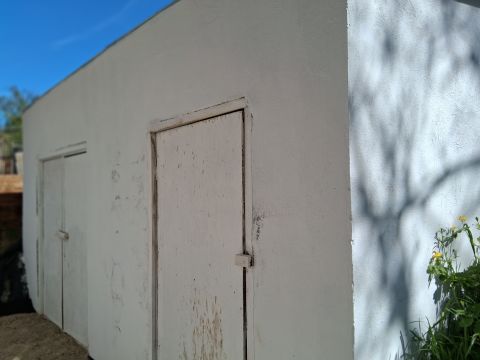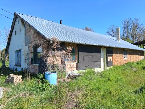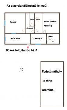 Negyedik telken szintén áll egy 80 m2 felújítandó ház, továbbá egy 70 m2 fedett műhely 3 fázis árammal kiépítve.