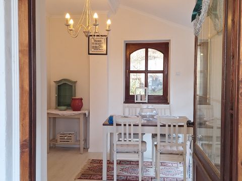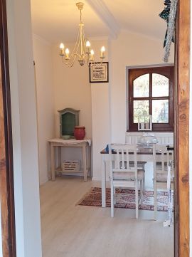 A kedves, egyedi hangulatot árasztó régi parasztház vályogból épült. A letisztult stílus, a boltíves átjárók, a fehérre meszelt falak, az egylégtér felüdülést adnak testnek és léleknek egyaránt.