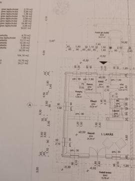 Alsó szinten: előtér, wc, konyha, kamra, nappali