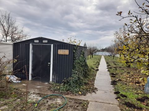 A két utca felől megközelíthető 1076 nm-es rendezett telek termő és fiatal gyümölcsfákkal ( alma, szilva, körte, meggy, barack, birs) beültetett melyek gondozást a fúrt kút segíti.