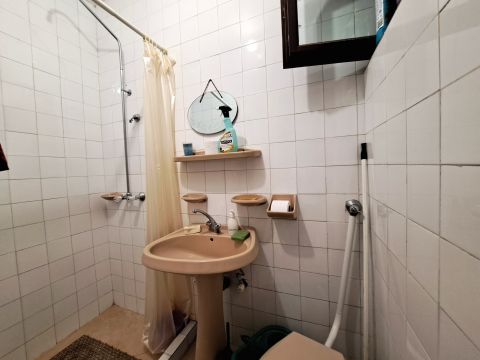 Im Erdgeschoss befinden sich ein Wohnzimmer, ein Essbereich und eine Küche sowie ein Badezimmer mit Dusche.