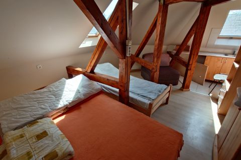 -az egyik szobában külön fürdő + konyharész is kialakításra került