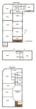 -második lakrész: 3 szoba + közlekedő + 2 WC + fürdő