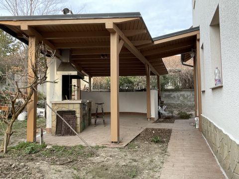 348 m² összterület, két teljes értékű lakás kandallós, teraszos nappali