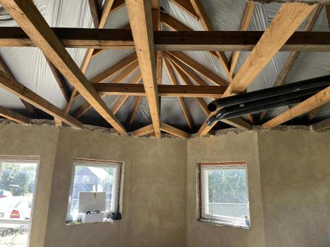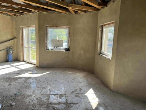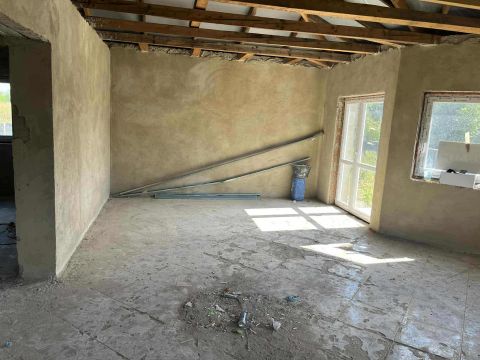 Sarok telken elhelyezkedésü modern stílusú ház 50 százalékában van készen,