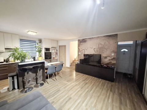 Az Élettérről: a földszinten, tágas-világos amerikai konyhás nappali (34m2), szoba, fürdőszoba és egy előszoba található. Az emeleten 3 szoba, közlekedő és egy fürdőszoba került kialakításra. A padlástér nem került beépítésre, kiválóan alkalmas elapakolandó dolgainkat elhelyezni. A nappaliból nyílik egy 14m2-es fedett terasz az udvari részre.