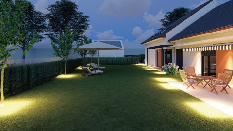 Ez a nappali + 5 szobás, 122m2-es lakótérrel rendelkező családi ház a modern építészet és a funkcionalitás tökéletes találkozása. A belső tér két szinten oszlik el, minden részletében az átgondolt tervezést tükrözi. Az alsó szinten a nappali-étkező-konyha nyitott, tágas egysége dominál. Hatalmas üvegfelületek engedik be a fényt, így a kert és a belső tér között szinte eltűnik a határ. Az alsó szinten 3 db. hálószoba kerül kialakításra, gardrób, fürdő, wc. A felső szinten további 2 db. szoba és fürdőt terveztek. Ilyen elrendezéssel nem lehet találkozni manapság!