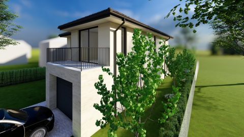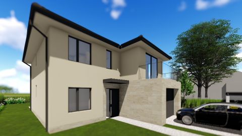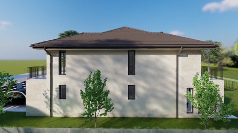 Ez a nappali + 5 szobás, 168m2-es lakótérrel rendelkező családi ház a modern építészet és a funkcionalitás tökéletes találkozása. A belső tér két szinten oszlik el, minden részletében az átgondolt tervezést tükrözi. Az alsó szinten a nappali-étkező-konyha nyitott, tágas egysége dominál. Hatalmas üvegfelületek engedik be a fényt, így a kert és a belső tér között szinte eltűnik a határ. Az alsó szinten közvetlenül a nappalihoz egy, 25m2-es nyitott terasz csatlakozik, továbbá kialakításra kerül 1 db. hálószoba, garázs, előtér, fürdő és wc. A felső szinten további 4 db. szoba melyből kettő erkélyes és 2 db. fürdőt terveztek. Ilyen elrendezéssel nem lehet találkozni manapság!