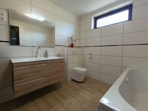 Két fürdőszoba és két WC biztosítja a kényelmet, emellett kamra és jól felszerelt konyha is helyet kapott az otthonban. A galéria tovább növeli a térérzetet és a kihasználhatóságot.