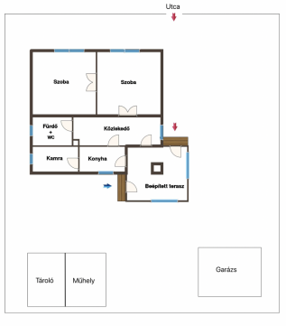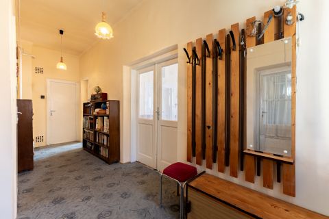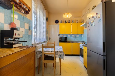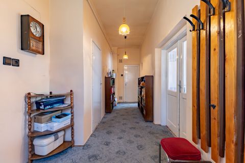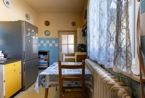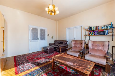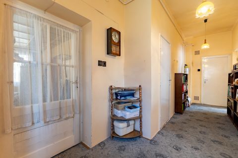 A korábban teraszként funkcionáló rész beépítésre került, amely jelenleg előszobaként szolgál. Az ingatlan összesen 87 nm alapterületű, elrendezése könnyen alakítható. Az utcai fronton két egyforma, egyenként 20,25 nm-es szoba található, míg az udvari nézetű helyiségekben kapott helyet a konyha, a kamra, a fürdőszoba WC-vel, valamint a közlekedő. A szobák burkolata eredeti, jó állapotú valódi parketta, a fürdőszoba és a konyha linóleummal, az egyéb helyiségek pedig szőnyegpadlóval borítottak. Az elektromos hálózat részben réz-, részben alumínium vezetékekkel kiépített. A bejárati ajtókat néhány éve cserélték, több ponton záródó biztonsági ajtókra, a szobák és a konyha ablakát, hőszigetelő üvegezésű műanyag szerkezetekre korszerűsítették. Az ingatlan tisztán, rendben tartott, de általánosságban építéskorabeli állapot jellemzi.