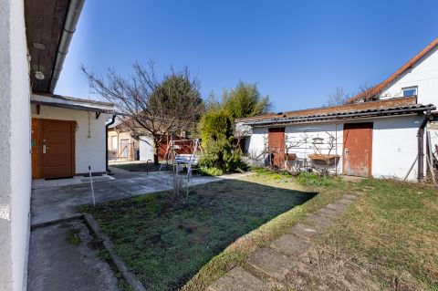 A telken a ház ideálisan helyezkedik el, mert az épület mögött, kellemes méretű, intim kert áll rendelkezésre. Minden közmű bevezetésre került. Autóval a parkolás a telken belül és a könnyűszerkezetes garázsban is megoldható. A porta jobb hátsó traktusában, két helyiségből álló műhely és tároló áll rendelkezésre.