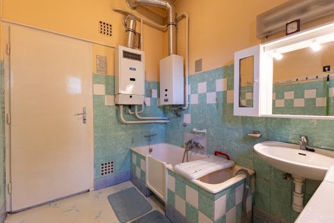 A fűtésről gázkazán gondoskodik, a hőleadók öntött vas radiátorok. A használati meleg víz-ellátást gáz átfolyós vízmelegítő biztosítja.