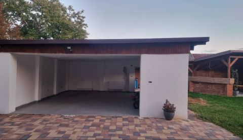A telek mérete kb 500 nm, amin dupla garázs, és nagyobb baráti összejövetelekre nyári konyha valamint sütögetés és főzésre alkalmas épület is megtalálható.