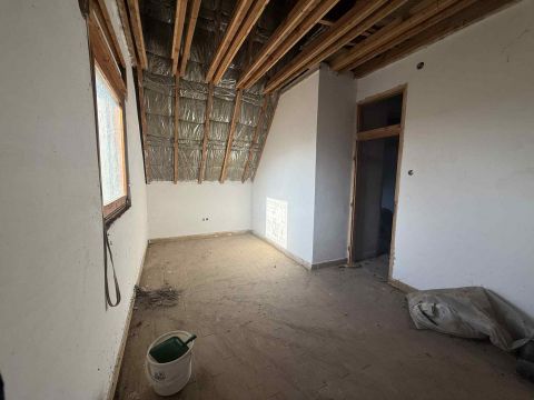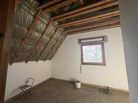 Az ingatlan belső elrendezése különösen praktikus: az emeleten található a nappali, egy hálószoba, egy kis méretű fürdőszoba WC-vel, valamint a konyha, amely a családi élet központjává válhat.