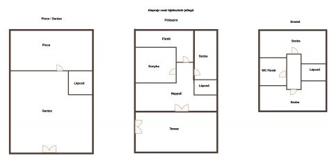 A Pince/Garázs 70 m2 , a földszint és a tetőtér szintenként 50 m2