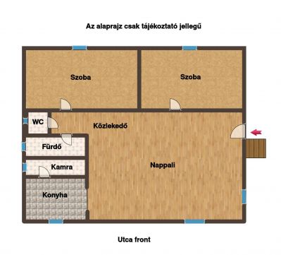 Ideális elosztás: 2 különálló hálószoba, kényelmes konyha kamrával, valamint külön helyiségben található WC és fürdőszoba a maximális komfort érdekében.Az ingatlanban a fűtést és a meleg vizet is egy kombi gázcirkó adja .