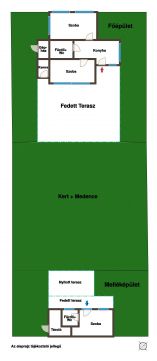 A 741 m²-es, gondozott telken 6 éve teljes körű felújításon esett át mindkét épület: