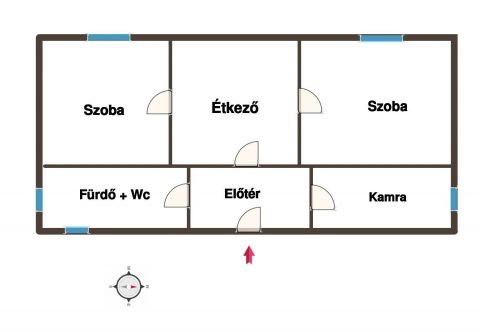 - Szobák, étkező laminált parkettával, többi helyiség járólappal burkolt