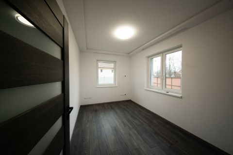 Az elrendezésnek köszönhetően a nappali és a hálórész jól elkülönül, így a ház praktikus és kényelmes életteret biztosít.