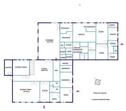 Főépület üzleti és közösségi funkciókra alkalmas kialakítás: