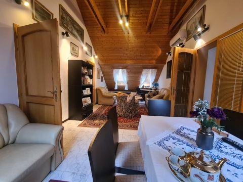 Tetőtér: a tulajdonosok számára kialakított, tágas, 100 m²-es nappali + két szobás lakás, amely kényelmes állandó otthonként vagy külön apartmanként is funkcionálhat.